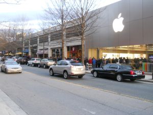 The line that numbered a few hundred people stood outside the Apple Store in Bethesda for the launch of the iPad 2.  I will say this about the iPad – it has a lot of good, cheap applications for kids and adults with disabilities.