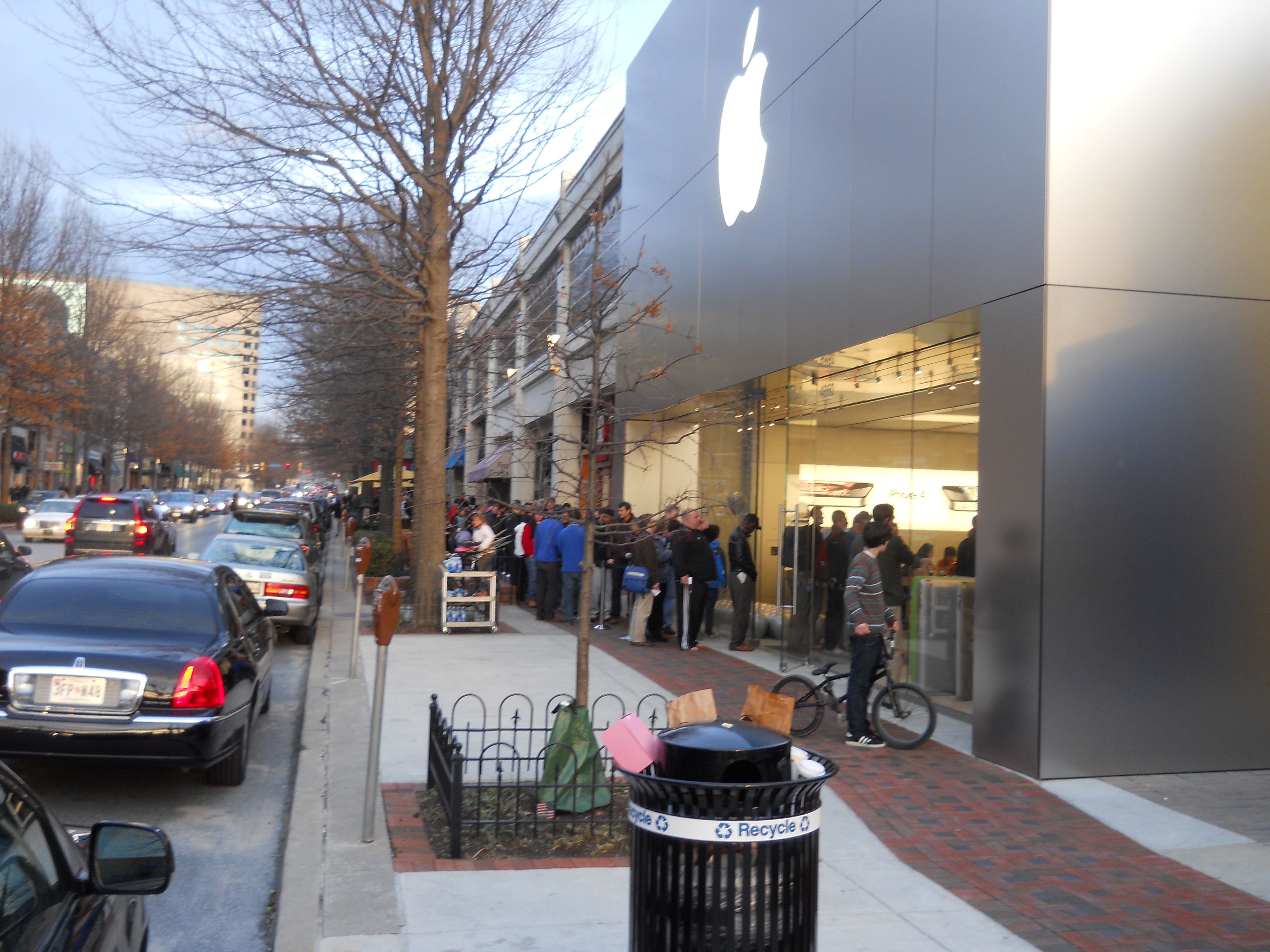 Large crowd at Bethesda Apple Store for launch of iPad 2